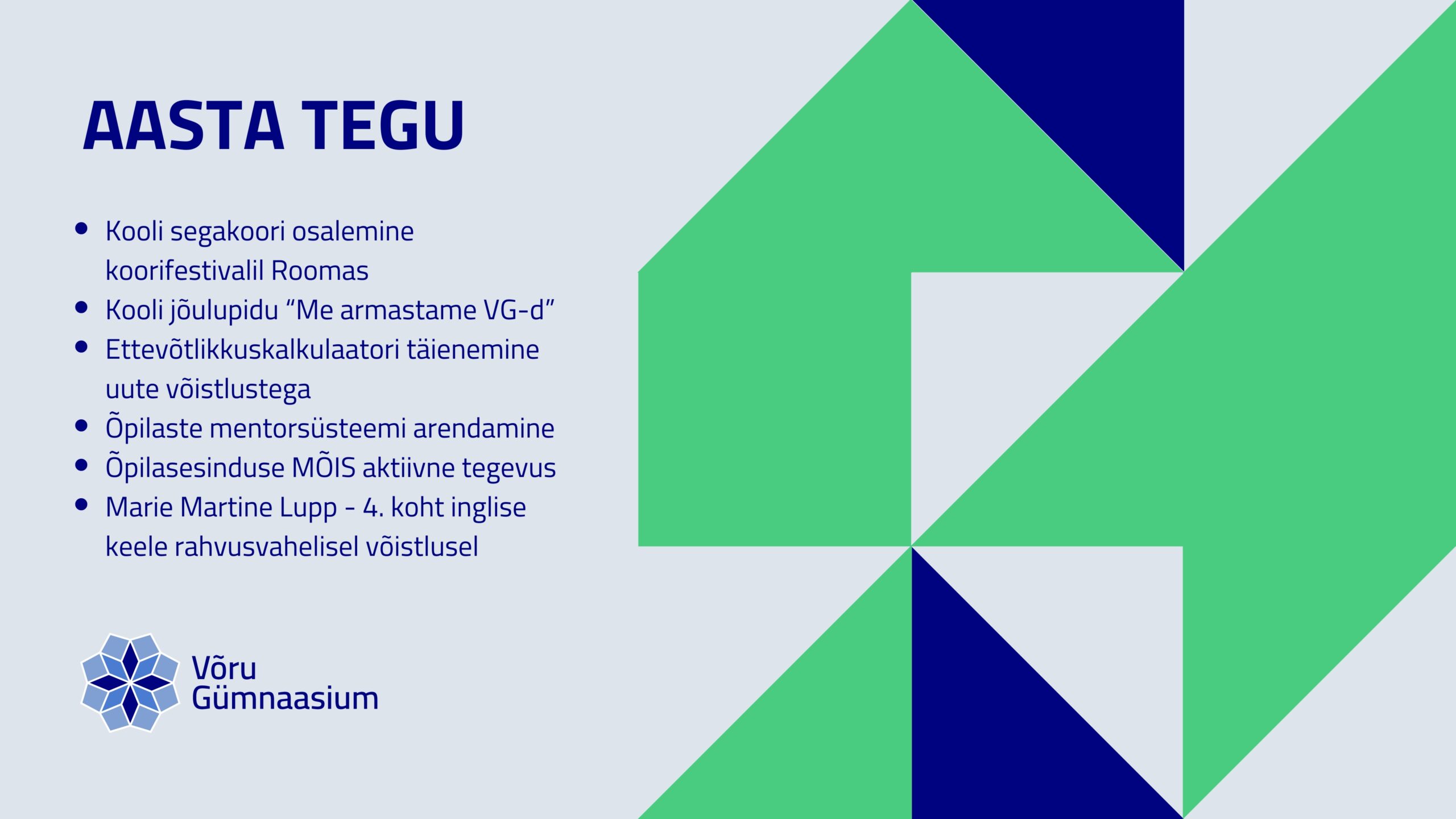 On kujunenud traditsiooniks, et kooliaasta lõpuaktusel hõikame välja kooli aasta teo. Aasta teo nimetus antakse koolis aset leidnud ettevõtmisele või sündmusele või koolipere liikme(te) saavutus(t)ele, mis õppeaasta jooksul on koolile olnud olulise tähtsusega ja mis on positiivselt mõjutanud kooli arengut. Parima teo väljaselgitamise eesmärgiks on märgata suuremaid kordaminekuid ja tunnustada nende elluviijaid. Hääletusel saavad osaleda kõik õpilased, vanemad ja kooli töötajad. Hääletada saab Stuudiumis. Ülevaade varasematest aasta tegudest on leitav siit.